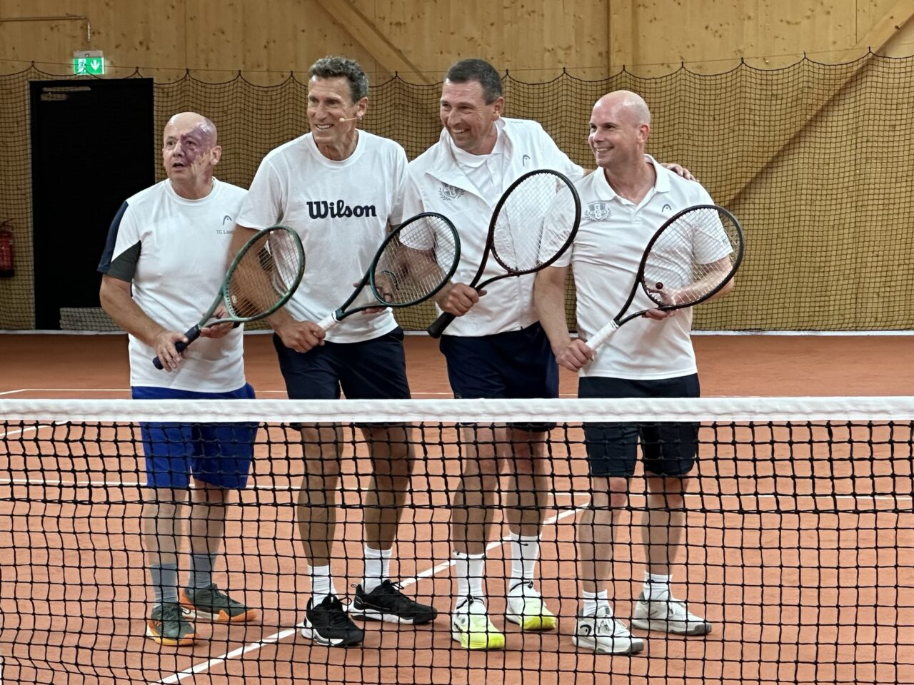 Wie Tennis richtig ausschaut, durften dann die Trainer des TCL, Pierre Biber, Ansgar Elbs und Bernd Elshof im Doppel mit Patrik Kühnen zeigen.