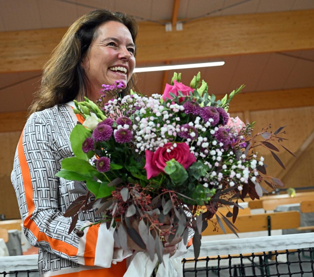 Annika Halder bedankte sich im Namen aller Mitglieder und überreichte der Gräfin, bei standing ovations des Publikums, eine Blumenstrauß.